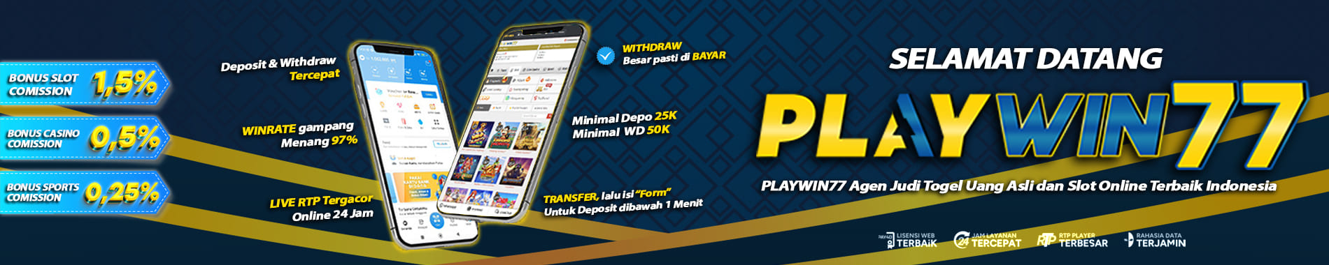 🔥 SELAMAT DATANG DI PLAYWIN77 - SITUS ONLINE BETTING LAYANAN LENGKAP & GACOR - BONUS DEPOSIT HARIAN 5% - EXTRA BONUS FREESPIN 25% 🔥 RTP LIVE TERTINGGI & TERUPDATE SETIAP MENIT 🔥